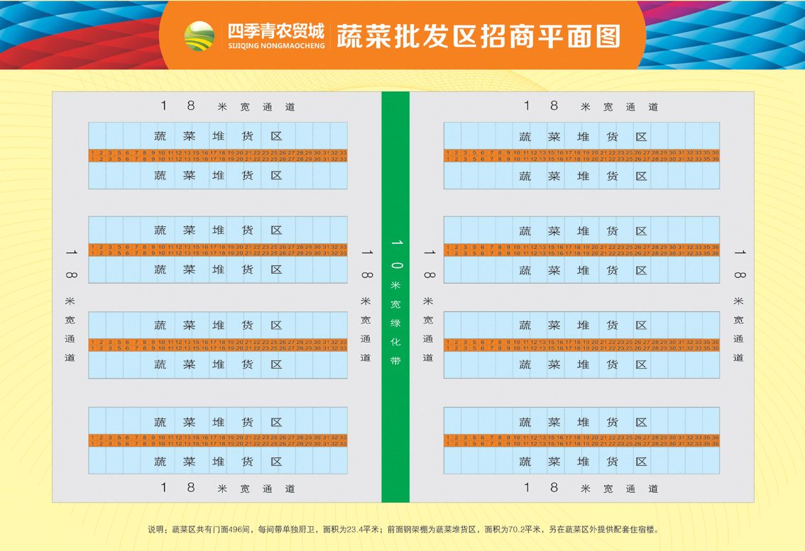 设有10㎡~120㎡多种摊位,商户可根据需求挑选;